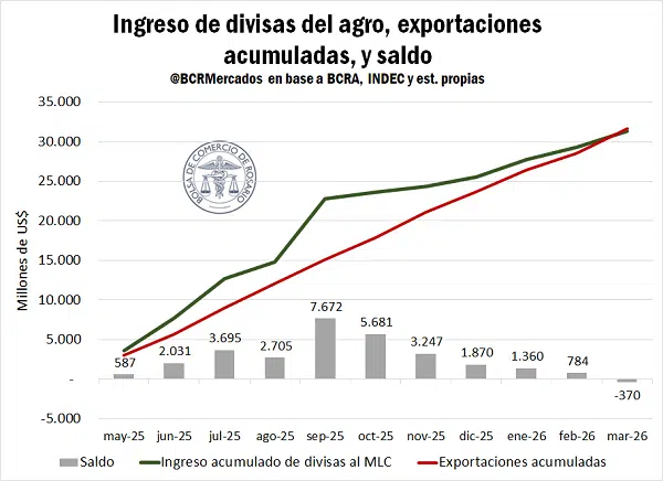 Como resultado, la proyección de ingreso de dólares del agro sube a US$ 35.375 millones en 2026.