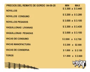 PRECIOS DEL REMATE DE GORDO PARA FAENA