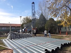 Continúa la construcción del nuevo pozo de abastecimiento de agua potable ubicado en Saladillo Norte. Ahora se trabaja la infraestructura para la explotación, tarea que lleva adelante la empresa que se adjudicó la obra mediante licitación.Según se informó, se debe llegar con la perforación hasta unos 90 o 100 metros de profundidad hasta el Acuífero Puelche.Una vez concluido, suministrará agua potable a todo ese sector de la nueva localidad del distrito.Para observar estos trabajos estuvo el Intendente Municipal Ing. José Luis Salomón, acompañado por funcionarios del equipo de gobierno local.