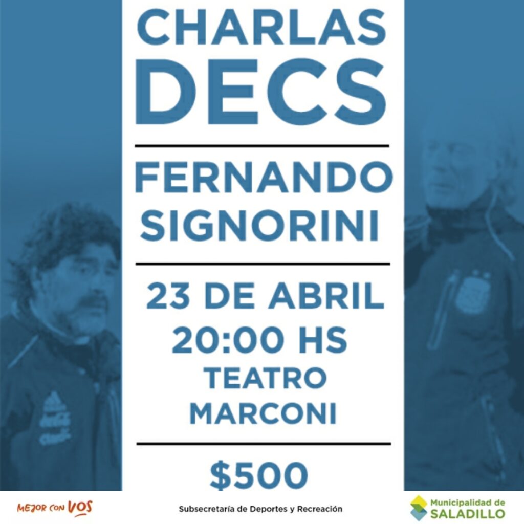 La Subsecretaría de Deportes de la Municipalidad de Saladillo lanzó un ciclo de charlas anuales vinculadas a líderes comprometidos con el deporte y la actividad física.El objetivo del ciclo es la difusión de ideas, anécdotas, vivencias y experiencias del disertante.Con las mismas también se busca apoyar económicamente a las instituciones deportivas de nuestra ciudad, ya que la intención es que las instituciones se encarguen de vender las entradas, con lo recaudado a su beneficio.Los disertantes van a ser siempre, personas que hayan dejado su huella en el deporte o en lo que tenga que ver con la actividad física.En esta primera charla, el próximo viernes 23 de abril contaremos con la presencia del “profe” Fernando Signorini.Fernando es profesor de educación física especializado en la preparación de futbolistas. Tuvo la inmensa fortuna de ejercer su profesión junto a algunas de las más emblemáticas figuras del deporte a nivel mundial, como Maradona y Messi, solo por citar algunas. Visto en el ambiente del fútbol grande, como uno de los grandes preparadores físicos de la historia.Sin duda que fue el gran profe personal de toda la carrera de Diego Armando Maradona, con quien compartió los mundiales de México 86 e Italia 90. Fue el mismo Diego, quien lo convocó como preparador físico de la selección nacional en el Mundial de Sudáfrica 2010. Personalidad querida por todos los jugadores que tuvo a su cargo.Un verdadero lujo que nos daremos este viernes 23 de abril en el Teatro Marconi de Saladillo, donde nos contará vivencias, anécdotas, experiencias y hablará sobre preparación física.Se respetarán todos los protocolos correspondientes y se tomarán todos los recaudos sanitarios para dicho evento. La capacidad es limitada, podés contactarte con dirigentes de los clubes de nuestra ciudad para conseguir la tuya.