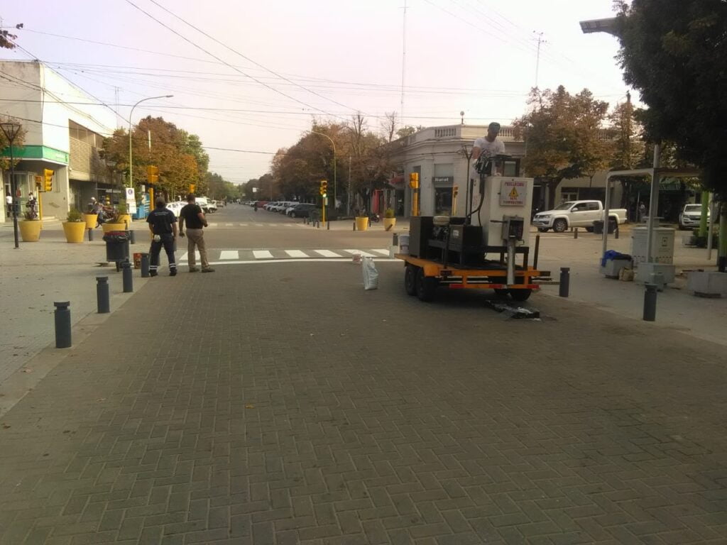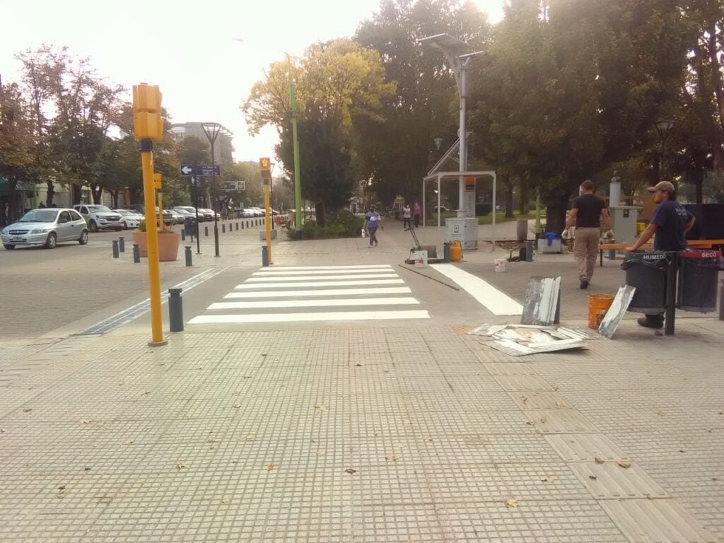 Esta mañana se realizó el mantenimiento de la señalización horizontal en Rivadavia y Belgrano.