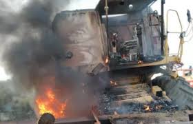 Se incendió una cosechadora mientras trabajaba en un campo de girasol