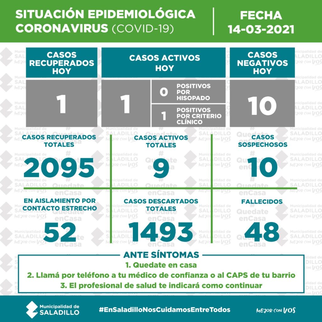SITUACIÓN EPIDEMIOLÓGICA EN SALADILLO | 14/03/2021